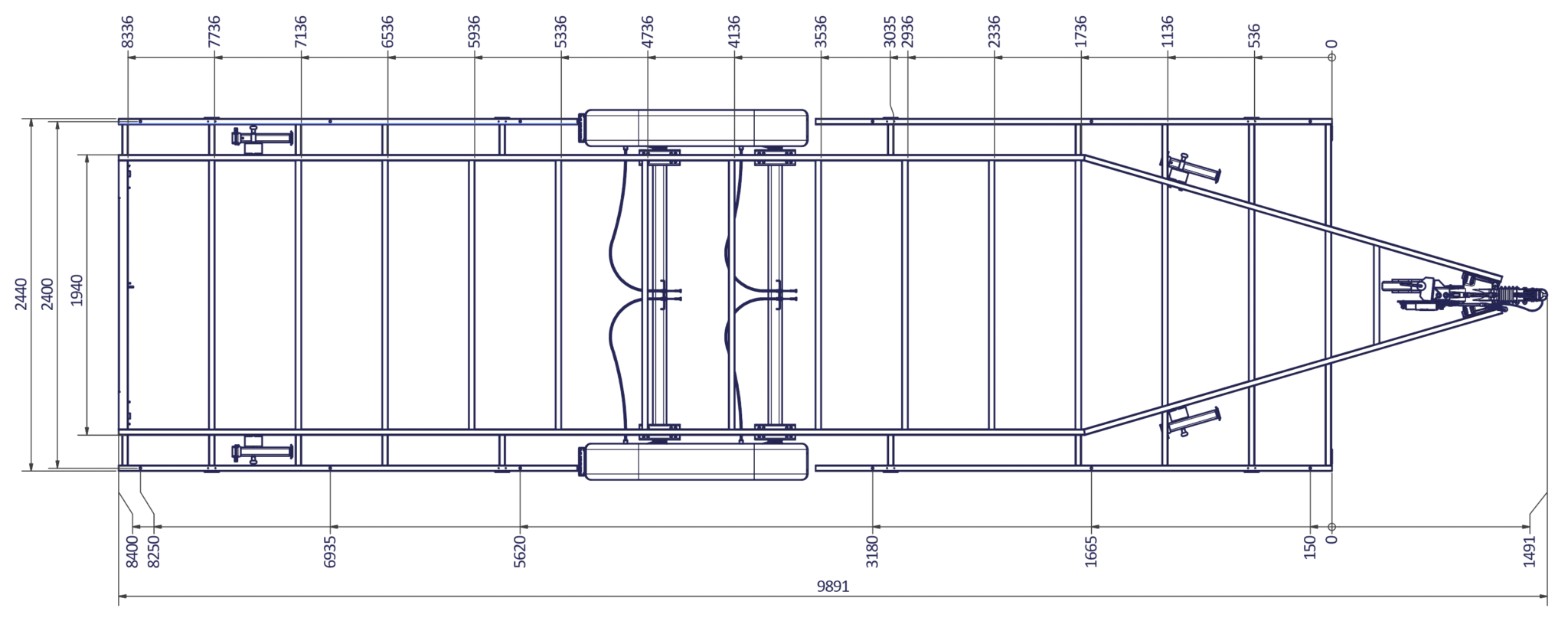 La ubicación estándar de los ejes es en el centro y a 20 centímetros hacia atrás. La ubicación de los ejes también puede ajustarse a los deseos del cliente.